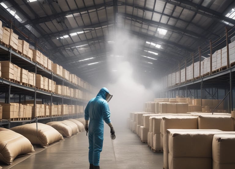 Nous intervenons dans les entrepôts, silos, usines et hangars pour désinsectiser efficacement les lieux de stockage et préserver les denrées sensibles : céréales, riz, blé, farine, produits transformés, etc. Notre méthode permet de lutter contre les insectes et nuisibles de manière rapide, sans altérer la qualité des biens. Idéal pour les industries agroalimentaires, les stockeurs et les logisticiens souhaitant assurer un haut niveau d’hygiène et de sécurité.
